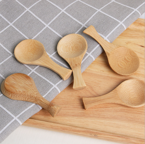Cuchara medidora de cocina pequeña con forma de pez de especias de bambú japonés